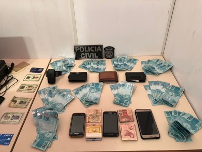Dois veículos Renault, modelo Symbol, nas cores prata e cinza, R$ 412, em espécie, e celulares também foram apreendidos. As notas falsas foram encaminhadas para perícia no Departamento de Polícia Técnica (DPT).