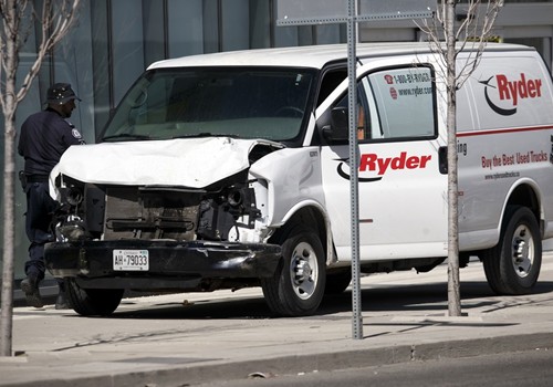 A van branca de aluguel subiu sobre a calçada num trecho movimentado da Rua Yonge, em Toronto, atropelando pedestres ao longo de aproximadamente 1 km. Dez vítimas morreram e outras 15 estão feridas. A van fugiu do local circulando às vezes pela calçada e, em outras ocasiões, na contra-mão. Cerca de 25 minutos depois, a polícia deteve Alek Minassian perto da van, num local nas imediações do atropelamento.
