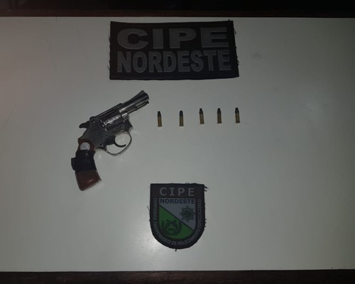Ao perceberem a presença da polícia, o suspeito dispensou a arma num terreno. Desta forma, os militares procederam com a abordagem e conduziu Antônio José Muniz até a Central de Flagrantes no referido município. Ele foi autuado criminalmente por porte ilegal de arma de fogo. A arma, um revólver calibre 22, com cinco munições, foi apreendida.