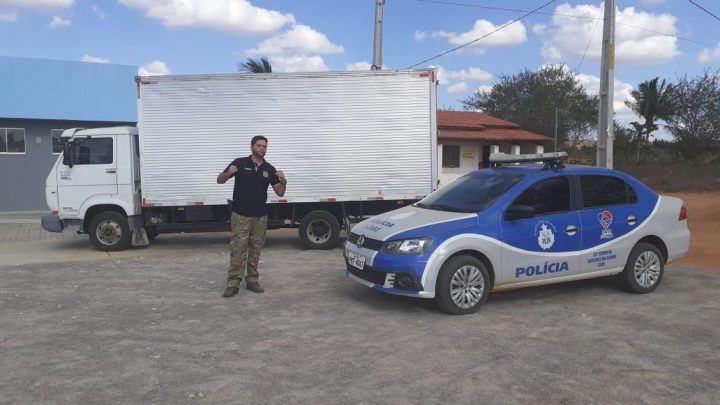 O veículo, um caminhão Baú de cor branca, placa policial NZU 6696, com licença de Lagarto-SE, transportava carga perecível, e tinha sido subtraído na noite do último sábado, 26.