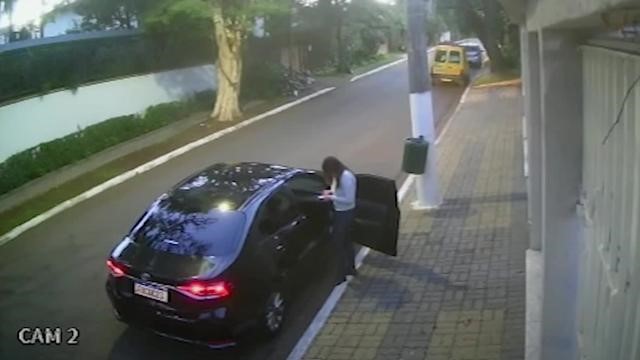 O caso aconteceu no bairro de Socorro, Zona Sul da capital paulista. Imagens de uma câmera de segurança mostram o momento em que dois suspeitos em uma moto aproximam-se e param ao lado de um veículo. Um deles parece estar armado.