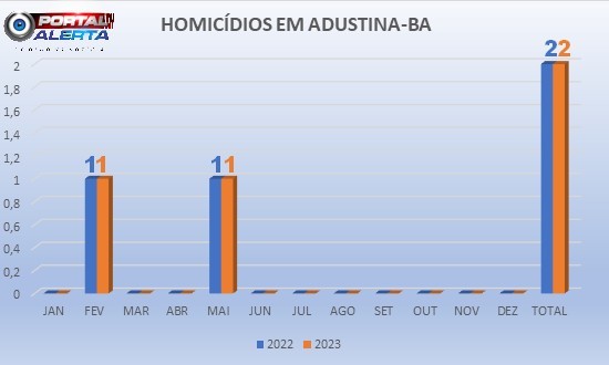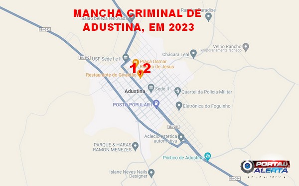 Com 02 homicídios registrados em 2023, Adustina-BA mantém o número de crimes desta natureza em relação ao ano anterior. Confira a Mancha Criminal da cidade, ano 2023