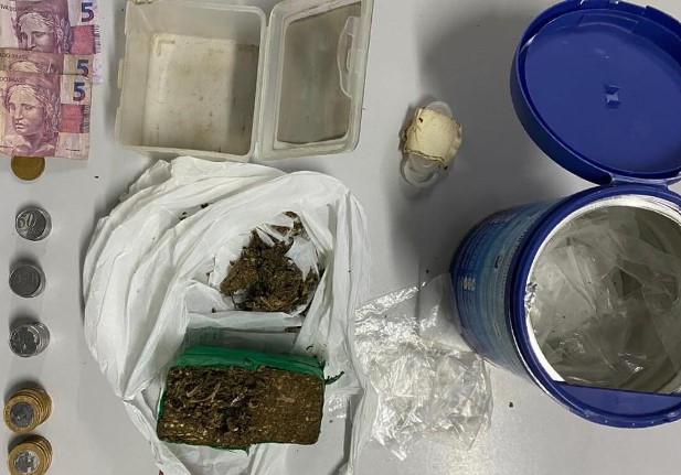 No interior do carro foram encontrados: 01 tablete de maconha pesando 300g, uma quantia de R$ 47,50 em espécie, embalagens utilizadas para acondicionar drogas, além do veículo em questão.