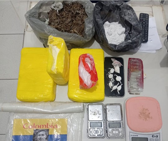 Segundo informações da PM, após receberem denúncias de tráfico de drogas na região do distrito de Tapuio, os policiais realizaram patrulhamento ostensivo na localidade. Em uma estrada vicinal, durante abordagem a dois homens em atitude suspeita, os militares encontraram 3,148 kg de cocaína; 332 gramas de maconha; três balanças de precisão e três munições calibre 32.