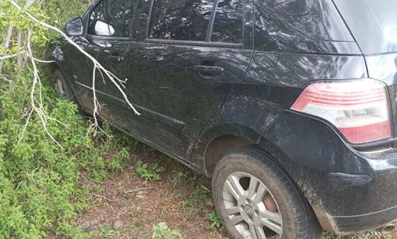Carro usado no apoio a dupla que assaltou empresário em Coité é encontrado em estrada vicinal de Santaluz