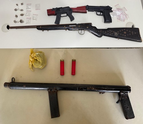 Já por volta das 14h do mesmo dia, durante rondas no bairro João do Alto, a guarnição realizou uma abordagem a um suspeito que transitava pelo local. Com o rapaz, foi encontrado um simulacro de arma de fogo, tipo pistola, 08 porções de maconha, e 04 porções de cocaína. Ainda aos policiais, o homem afirmou possuir uma espingarda e um simulacro de fuzil. Assim como no caso anterior, o abordado foi conduzido para a Delegacia de Polícia Civil da cidade, juntamente com o material apreendido, para a adoção das medidas cabíveis. O conduzido também não teve a identidade divulgada.