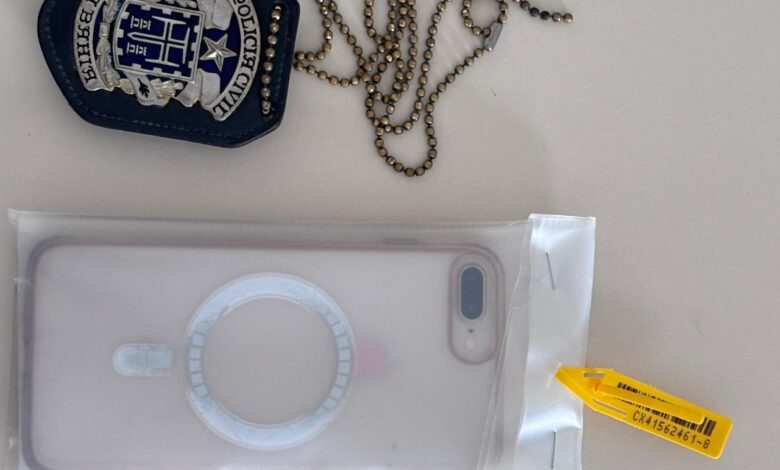 Durante a diligência, foi apreendido um aparelho celular modelo Apple iPhone 8 Plus, utilizado pelo investigado. O dispositivo foi desligado, devidamente envelopado e lacrado para posterior envio à unidade de origem, onde será submetido à perícia.