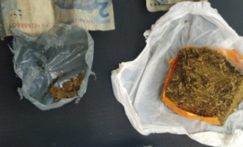 Os militares foram até o local onde encontraram o suspeito na área externa da casa, e após busca pessoal foi flagrado com 02 trouxas contendo maconha, e uma quantia em dinheiro. Ao ser indagado pelos policiais, o rapaz afirmou possuir mais material ilícito que estaria enterrado no quintal de outra casa, fato confirmado posteriormente.