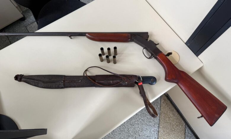 Os militares foram até o local, onde encontraram o suspeito, que tinha em sua posse uma espingarda cal. 32, contendo seis munições, sendo cinco intactas e uma deflagrada.