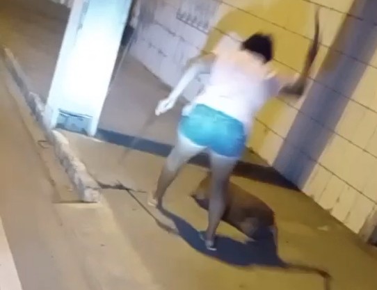 Um vídeo que circula nas redes sociais, mostra o flagrante de maus tratos de uma mulher em relação a uma Capivara que estaria circulando nas ruas de Adustina-BA.
