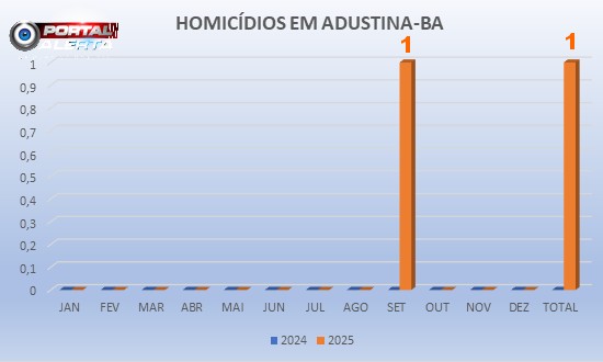 O município de Adustina-BA registrou apenas um homicídio ao longo de todo o ano de 2025. A cidade estava desde maio de 2023 sem registros de crimes desta natureza.