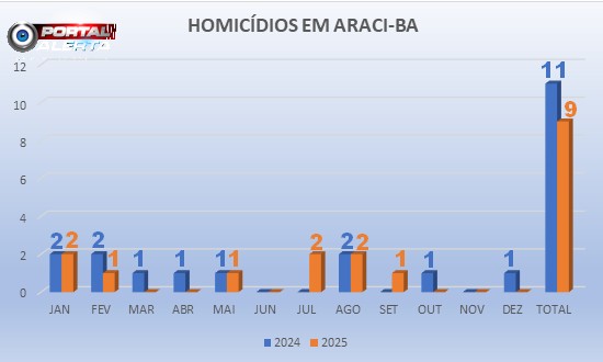 Em 2025, Araci-BA registrou nove homicídios, sendo seis deles com o uso de arma de fogo.
