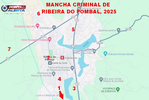 Ribeira do Pombal-BA aumentou em 16% o número de homicídios em 2025, em relação ao ano anterior. Confira a mancha Criminal!