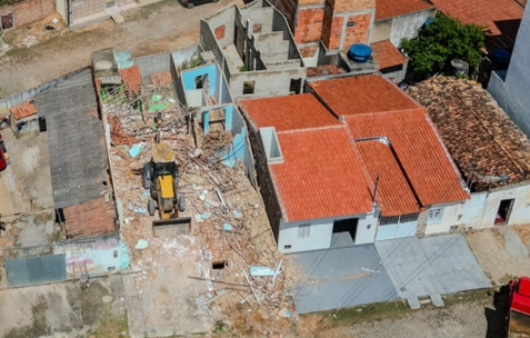 Um dos locais mais afetados foi a Rua São José, onde o nível da água chegou a um patamar preocupante. Para resolver o problema de forma emergencial, a Prefeitura realizou a desapropriação de duas residências, permitindo a abertura de uma nova via para escoamento da água.