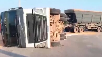 Carreta carregada de milho tomba no trevo de acesso a BR 235 em Jeremoabo BA